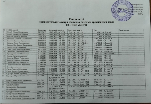 Пришкольный лагерь при МБОУ СОШ с.Кызыл-Арыг «Радуга» приглашает в летний период 2025 года в соответствии с графиком смен оздоровления детей: